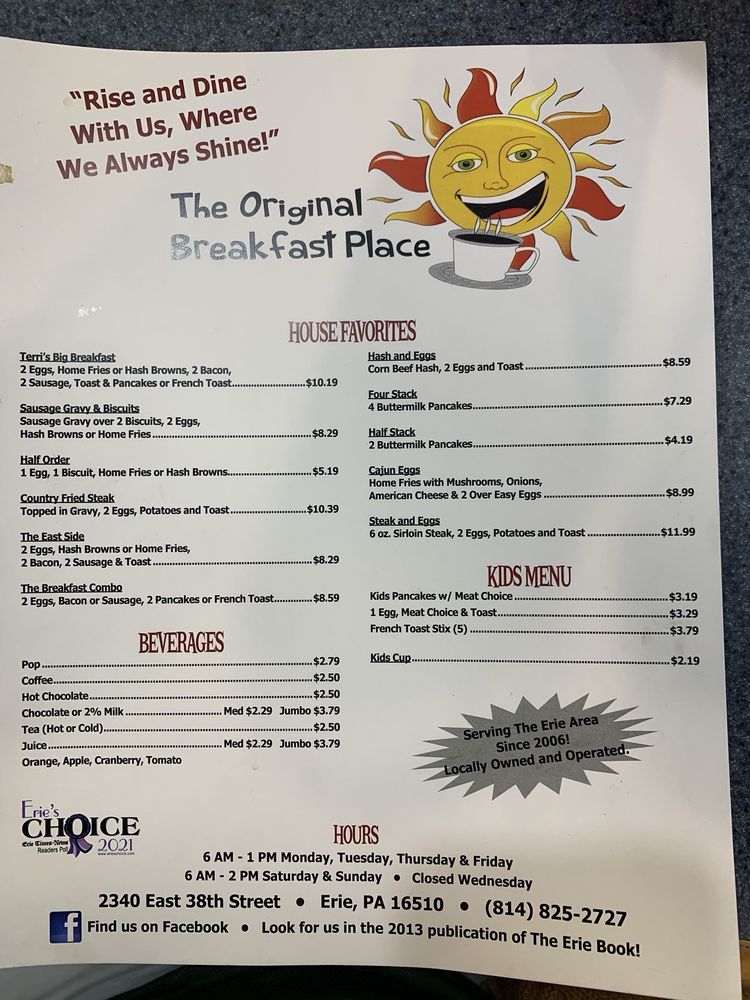 The Original Breakfast Place Menu